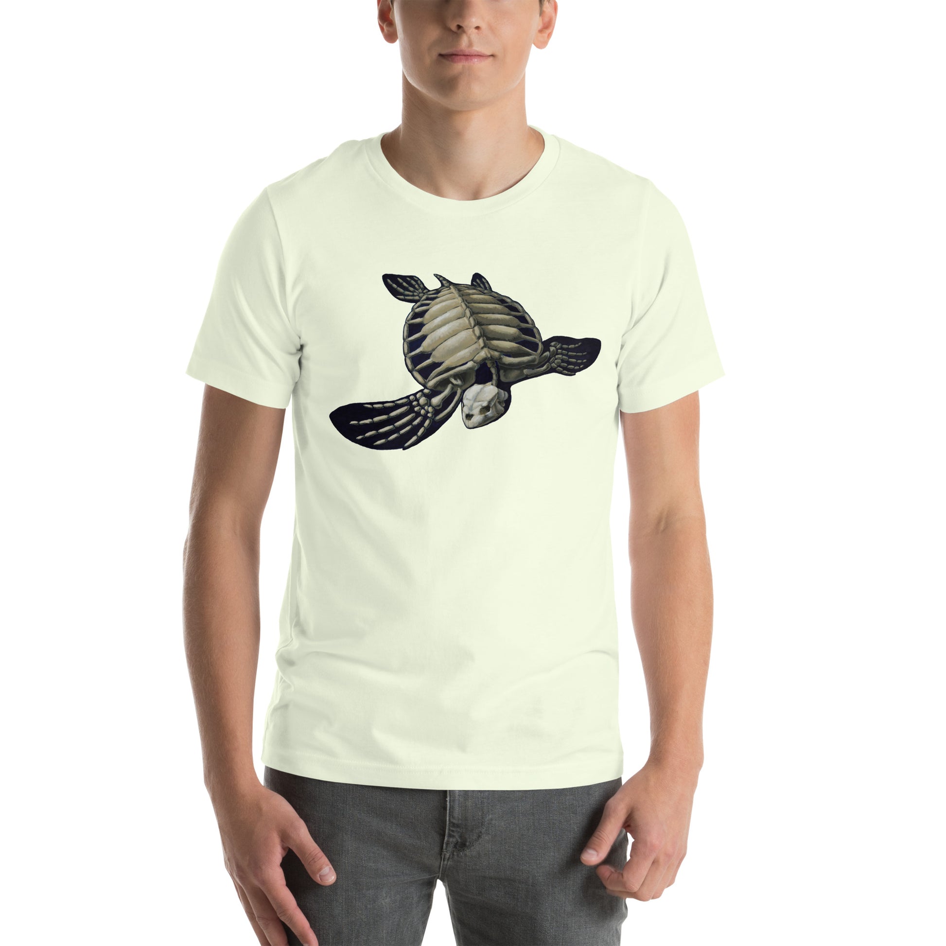Explore the deep with our Modified "Ossein" Unisex t-shirt. Featuring the intricate anatomy of a sea turtle, this shirt doubles as a vehicle to spread awareness for marine conservation. Made with high quality materials, this t-shirt is perfect for any ocean lover.